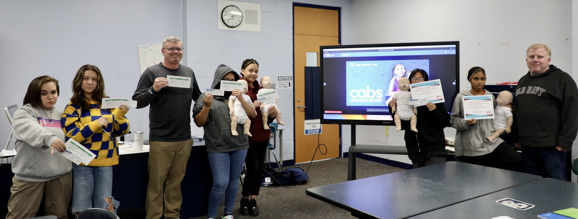 A group of students from the Stoklosa also took a babysitting class that taught them about developmental stages of children, how to handle crying or defiant kids, the proper way to put a baby down to sleep, and much more.