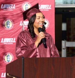 “It takes a special type of person to put in the extra work, the hard work to be here this evening,” he said. “Everybody deals with a lot of tough things coming from Lowell, coming from a rough and tumble city, getting up and being motivated going to school every day takes a different type of character being from Lowell. I‘m very proud of each and every one of you.”