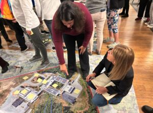 Chelmsford School Committee member Diana Lebeaux discusses some of the elements at the current Parker Middle School site with Ashley Cullion, principal at Traverse Landscape Architects.