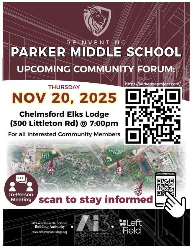 CHELMSFORD – Members of the community were invited to weigh in on the Parker Middle School Building Project in Chelmsford on Wednesday, Oct. 22, during the first of three public forums.