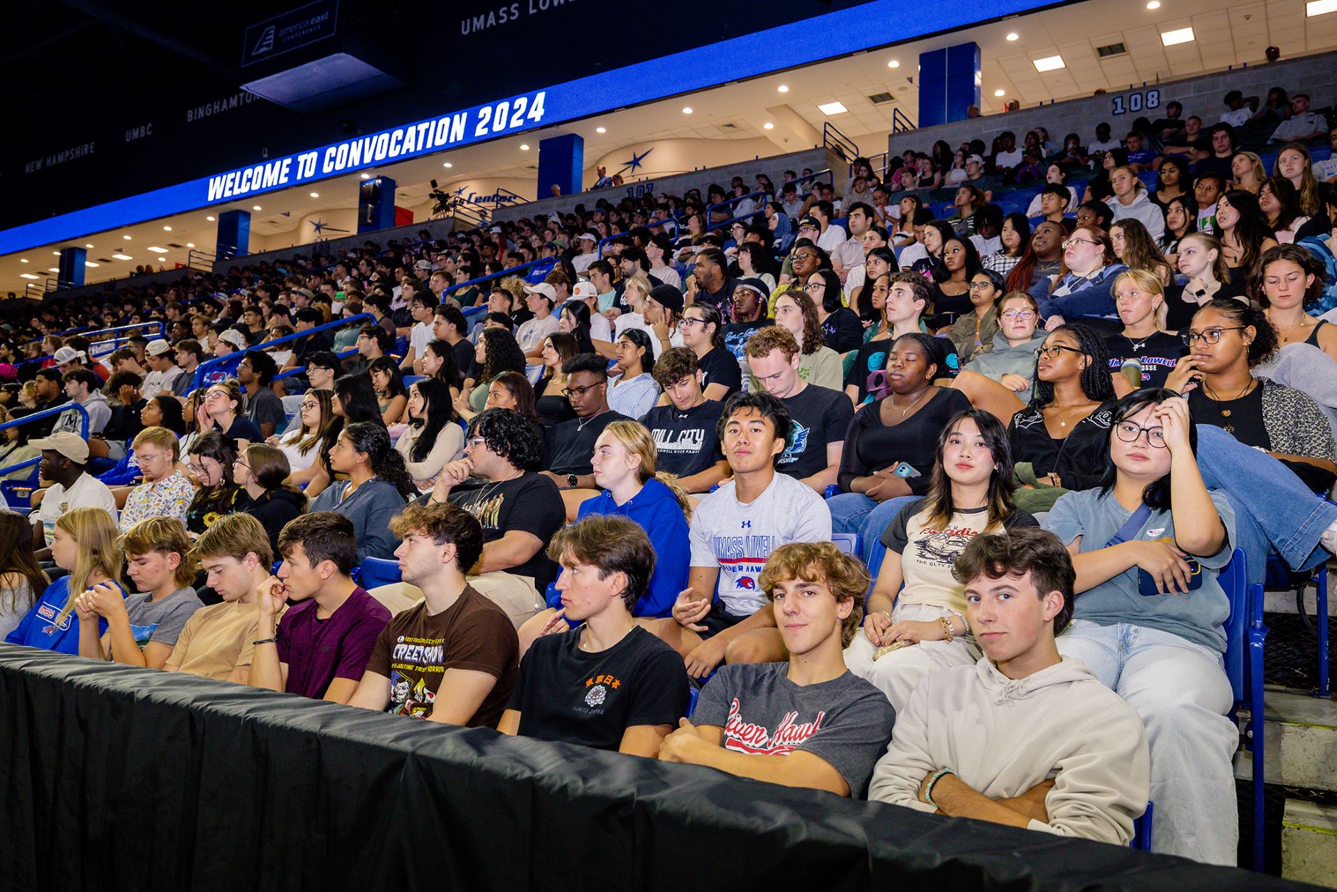 - Members of the Class of 2028 and transfer students gathered at the Tsongas Center Tuesday, Sept. 3, to mark the beginning of the academic year. / Photo by Henry Marte