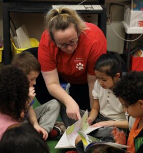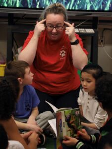 Introducing a lesson on animal stories, Savastano brings an excitement and joy that captivates the students, leaving them excited to dive in. Every student is focused on her and ready to be part of whatever is about to happen.