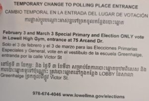 Additional signage will be placed at these locations directing voters to the alternative entrances. Voters may confirm their voter registration, ward, precinct and polling location at www.voteinma.com or by calling the Lowell Elections Dept at (978) 674-4046.