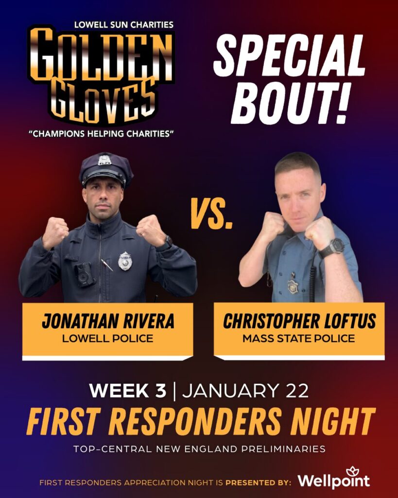 LOWELL – The 79th Annual Golden Gloves, presented by Lowell Sun Charities and held every Thursday through March 5 at the Lowell Memorial Auditorium, held Thursdays from January 8 through March 5, will feature First Responders Night next Thursday, January 22.