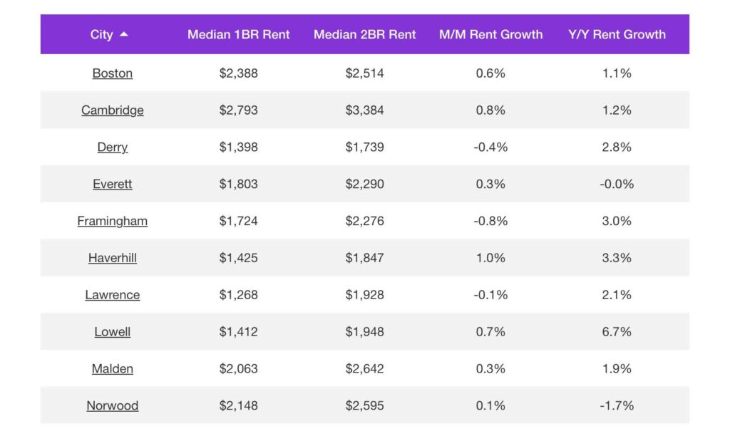 Rental Cost up! To no one’s surprise, Lowell has seen the fastest rent growth over the past year. The overall median rent for a two bedroom was $1,855 in July, up nearly 6.7% over the last twelve months.