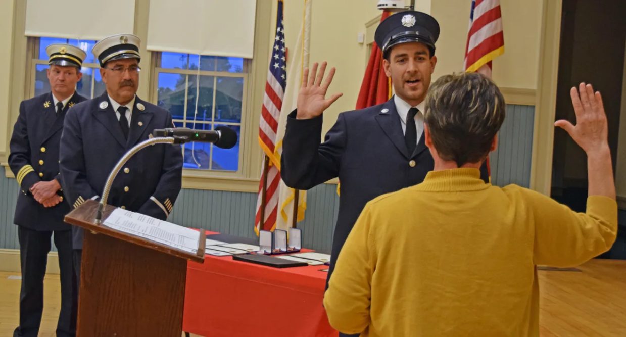 Firefighter Ryan Charette was sworn in to the Department.