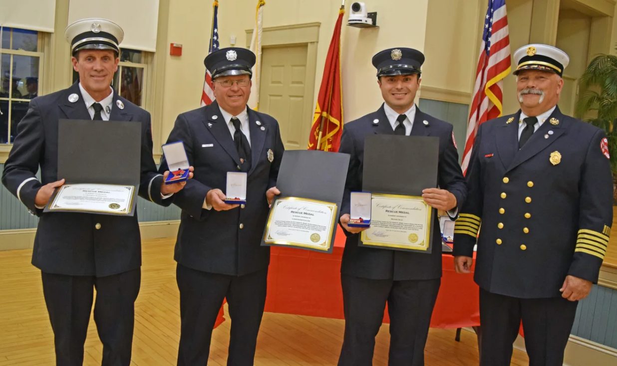 Rescue Medal Award: Lt. Ken McMeniman, Firefighters Chris Coalter, Brian Lanteigne, and Michael Silva, and Police Officer Zach Coleman