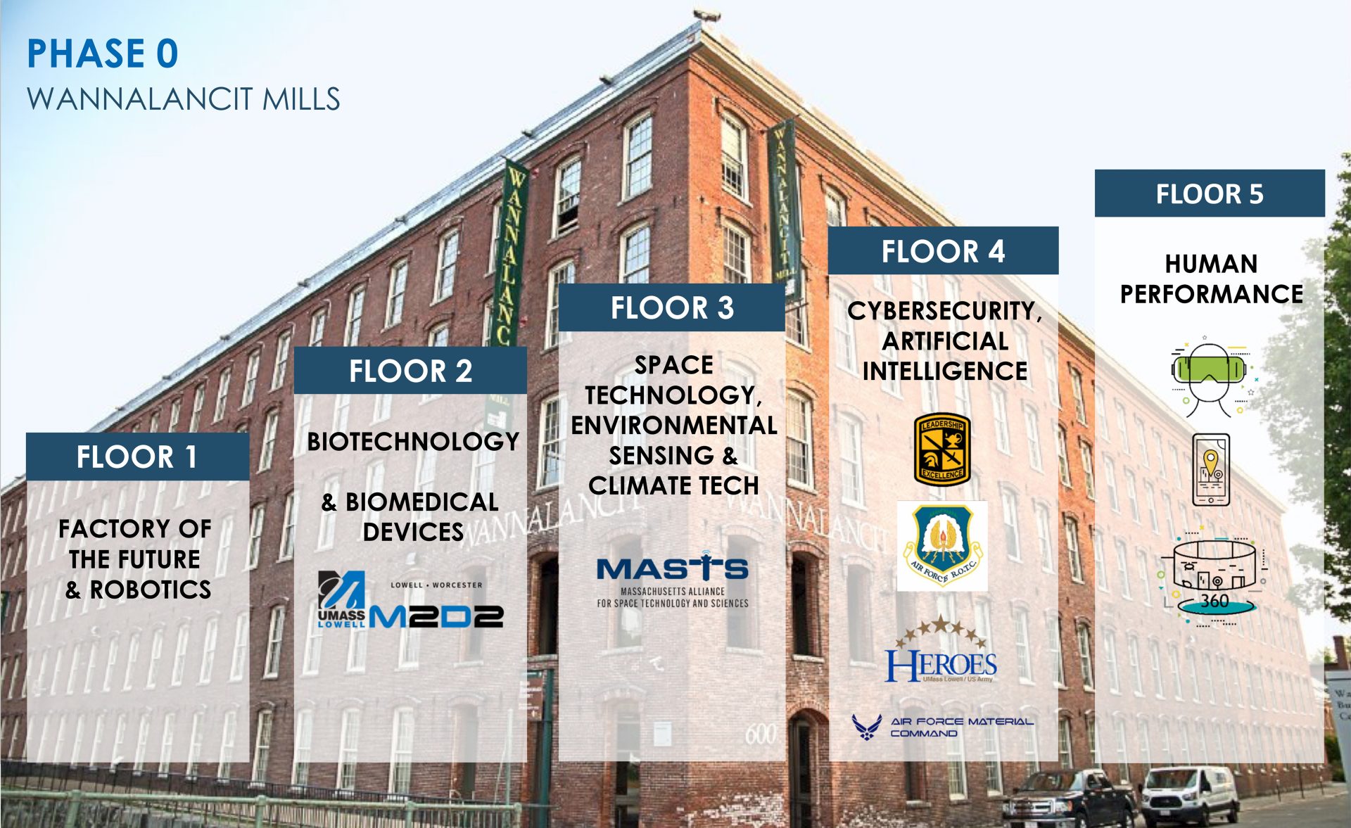 The additional phase encompasses a reshuffling of the deck for UML operations which creates enough space in the Wannalancit Mills to house these companies while their permanent office space is built.