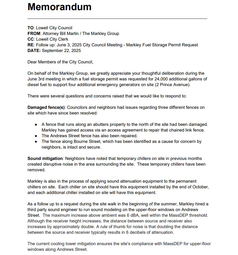 During last night’s Lowell City Council meeting, the Markley Group’s proposal for more backup generator fuel capacity was greeted about as warmly as an ICE agent at a Massachusetts Democratic party gathering.