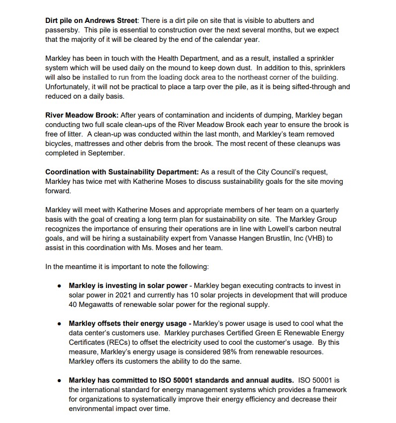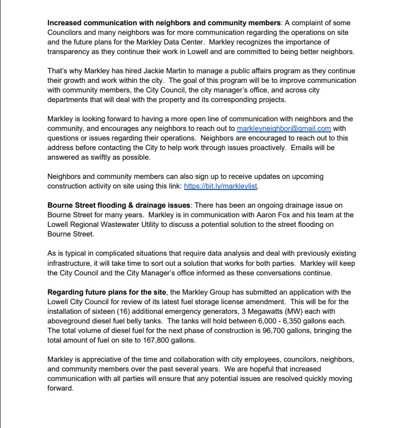 InsideLowell asked for and earlier today received the document mentioned from former Lowell City Councilor Bill Martin, the attorney representing the Markley Group.