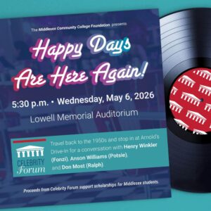 “Middlesex and the MCC Foundation are ecstatic to host Happy Days Are Here Again as part of our Celebrity Forum this year,” said Judy Burke, MCC’s Vice President of Institutional Advancement & Workforce Development. “We are excited to hear their conversation and share in their dynamic, all while raising critical funds for our students. The Celebrity Forum is a landmark event in Lowell each year, which would not be made possible without the support of our sponsors and partnerships. Thank you to Henry Winkler, Anson Williams and Don Most for joining us, to Spectacle Live for their collaboration, and to our sponsors for helping to change the lives of our students for the better.”