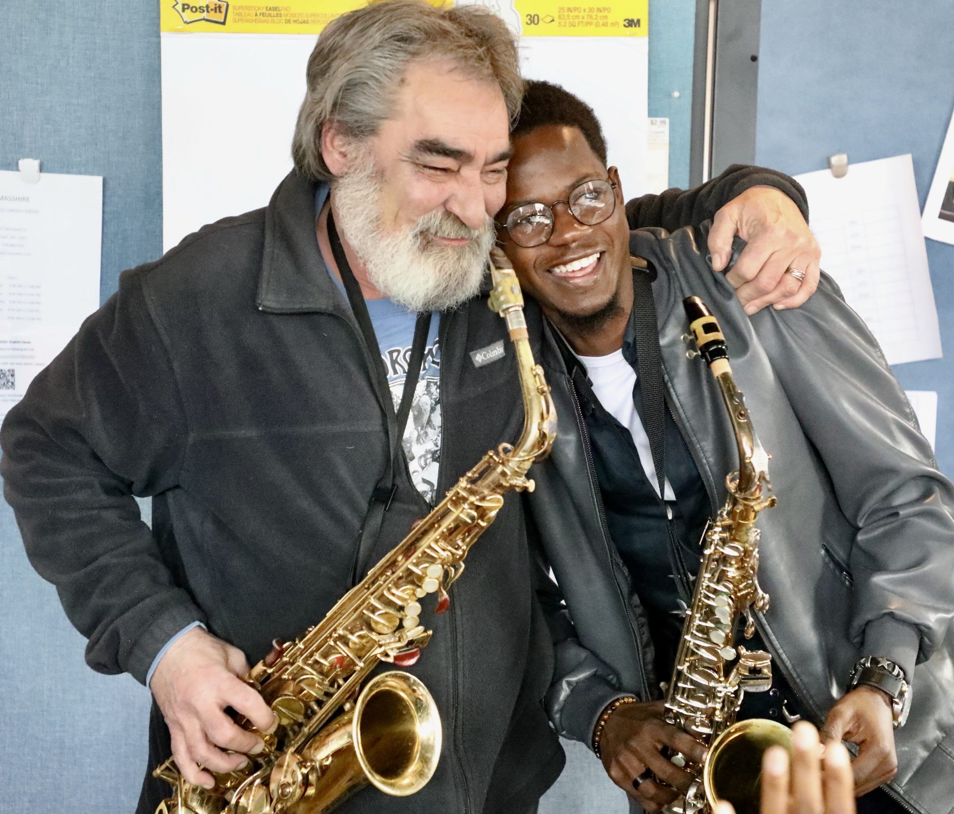 As soon as Jean-Marie lifted the lid on that saxophone case, put it together and wet the reed – a jam session broke out. Any planned lessons were suspended – this was now music class.