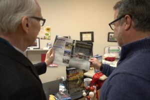 Kevin Coughlin (left), Lowell Sun Charities, and Brian Bradbury (right), Revolutionary Valley Executive Director. (Photo courtesy Hunter R. Berube)