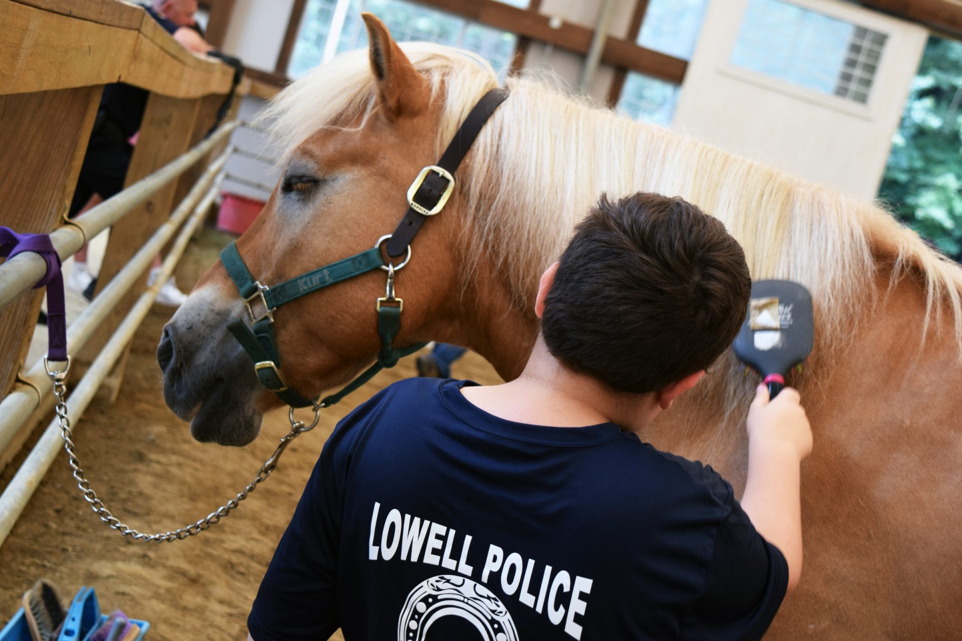 ”The Lowell Police Department is proud to partner with Challenge Unlimited at Ironstone Farm and the Lowell Public Schools. This is a great opportunity for the Officers to interact with the kids to help build self-confidence and a sense of teamwork while having fun,” said Superintendent Hudon. “I was privileged to see first-hand the bonds that form when the kids contact, communicate, and learn to care for the horses. It is truly a memorable experience that we are looking to continue in the future.”