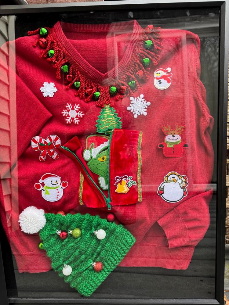 Thank you to City Councilors Erik Gitschier and Corey Robinson, who have agreed to increase their participate in the upcoming Salvation Army Radiothon on December 6. They are allowing their friends and supporters to vote for them to wear one of my “unique” Christmas Sweatshirts to a City Council meeting if they collect the most donations, or while they direct their supporters to vote for either Warren Shaw’s staff or two members of the Salvation Army Advisory Board to wear them while bell ringing (HI Paul Belley and Lynda Clark!) …Whichever team ‘wins’ by raising the most money will also receive this beautifully framed sweater donated by Donna Murray, who won’t let her husband Jim hang it in the house!