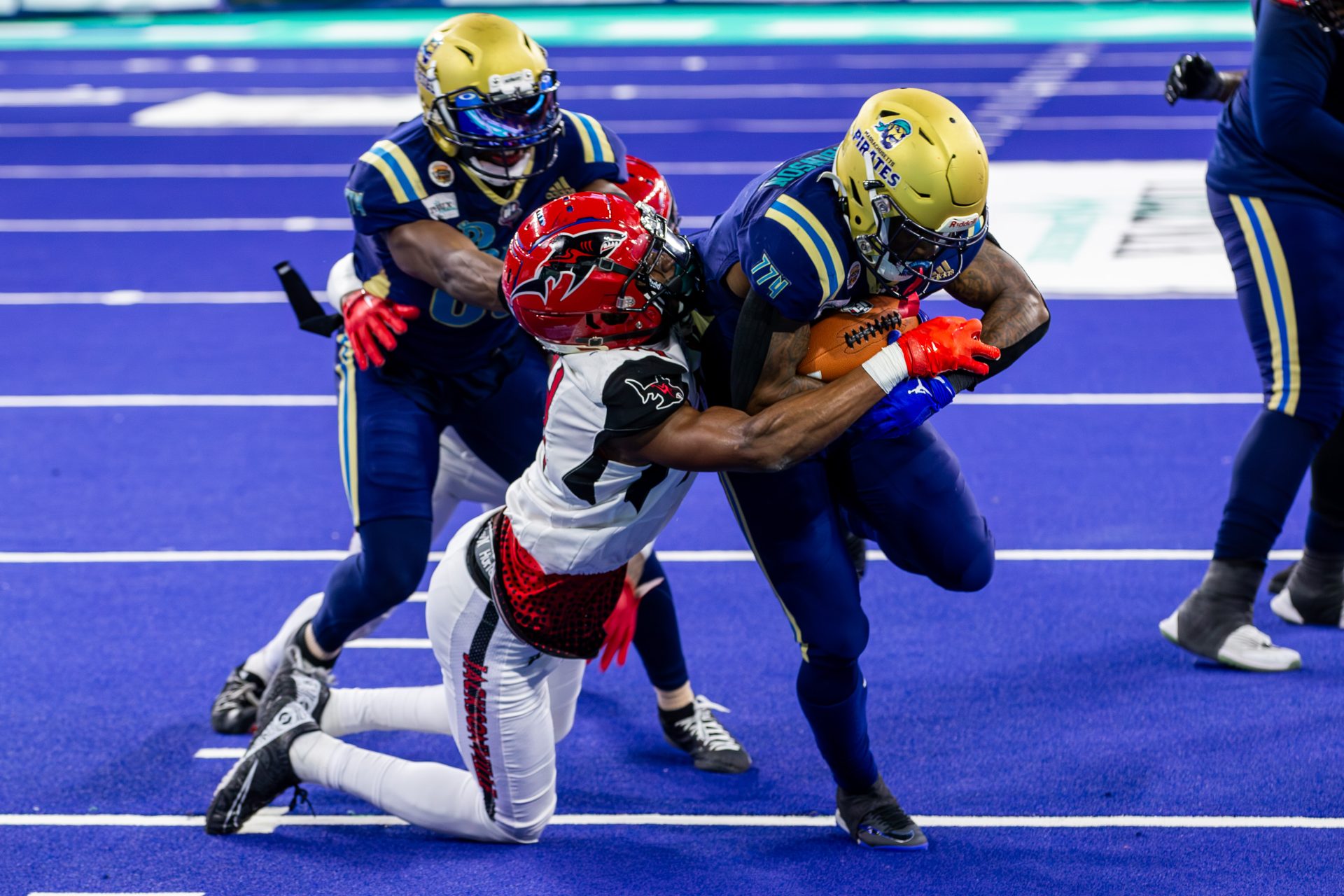 Those in attendance, many of them appreciative families with young children, had a ball and went home happy, courtesy of the Pirates 26-21 victory over the Jacksonville Sharks.