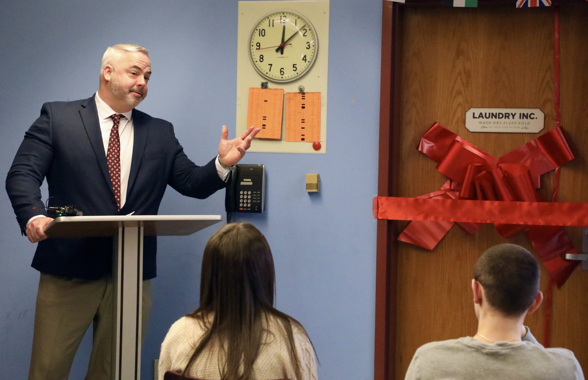 Superintendent of Schools Liam Skinner praised the opening of the Butler laundry room, taking the opportunity to recognize the culture that has blossomed at the Butler and the impressive leadership of Principal Jaime Moody and her team.