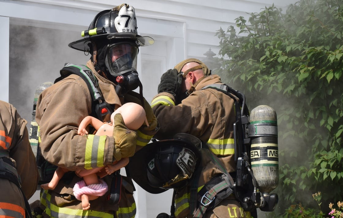 Firefighters on Tuesday donned their turnout gear and Self Contained Breathing Apparatus (SCBA) in 85-degree temperatures before they headed inside the smoke-filled home to search for three dummies.