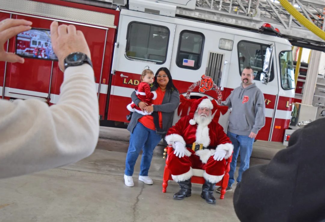 - Retired Dracut Fire Alarm Operator and Lowell Police Dispatcher Steve Paris volunteered to get photos of Santa with families who visited, and families were also able to take their own photos. (Courtesy Dracut Fire Department)