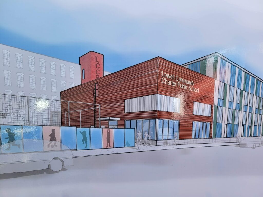 City officials, elected representatives and assorted community leaders joined LCCPS teachers and administrators to celebrate the occasion and learn more about the planned space in the Mill No. 5 complex donated to the school last year by the Lichoulas family. The school’s original plans called for a new facility across Middlesex street, but the generous gift shifted the focus inward, and plans were re-drawn to create space inside the mill complex. The new space is expected to open in the Fall of 2027.