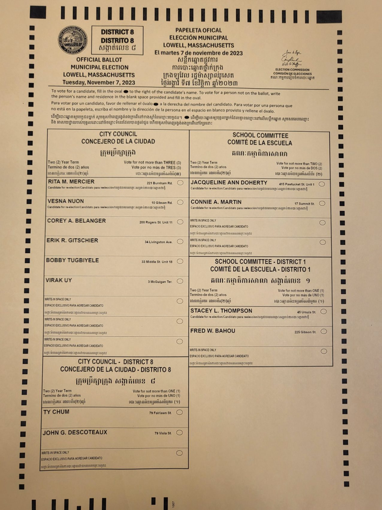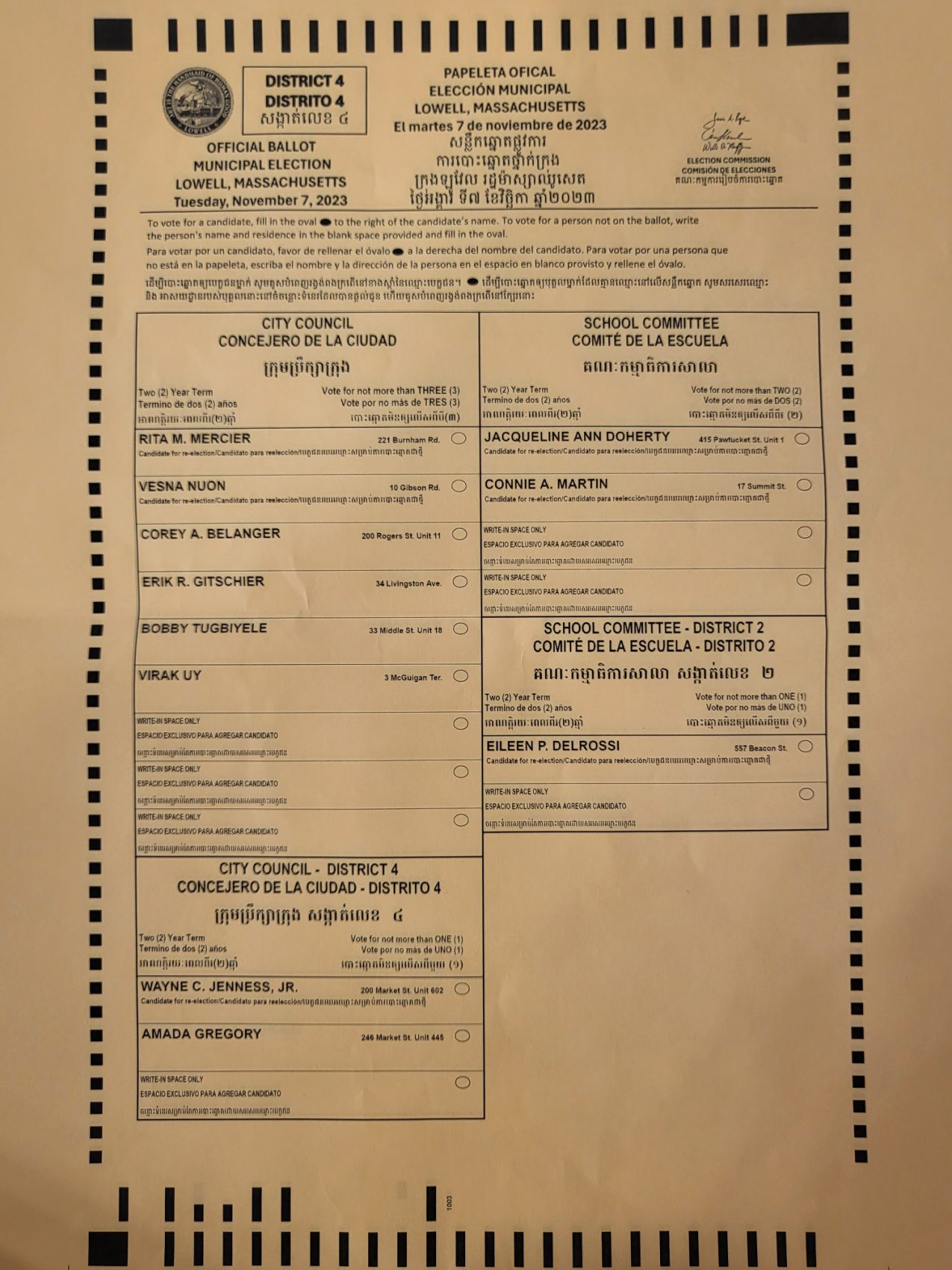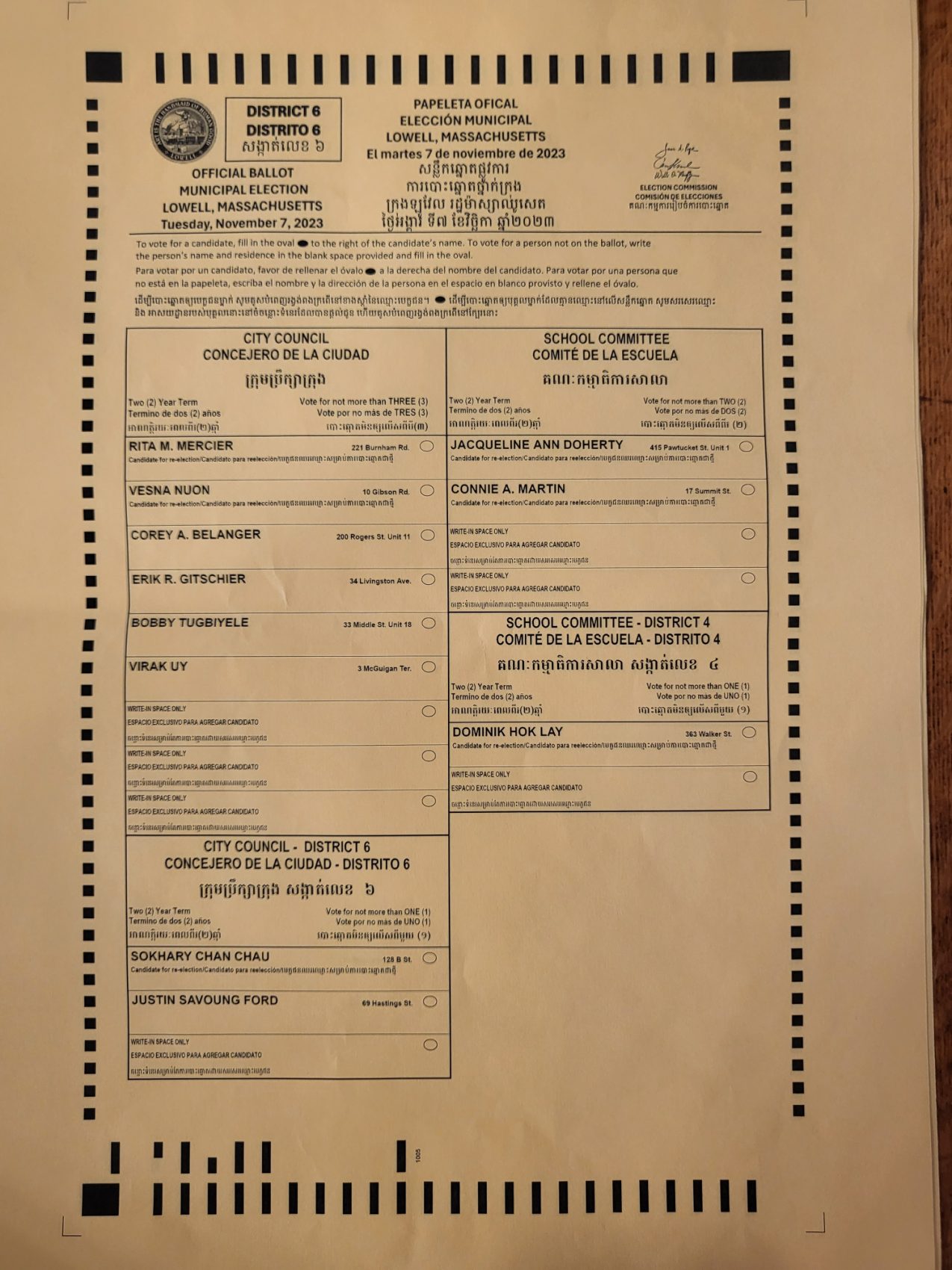Mail/Absentee ballots were mailed out this past Monday to those who had already requested them. As of press time, Director of Elections Greg Pappas tells InsideLowell 68-people have applied for mail in or absentee ballots, though he expects more in the coming days. Monday November 6 at 12pm (Noon) is the final day to apply for in-person absentee ballots.