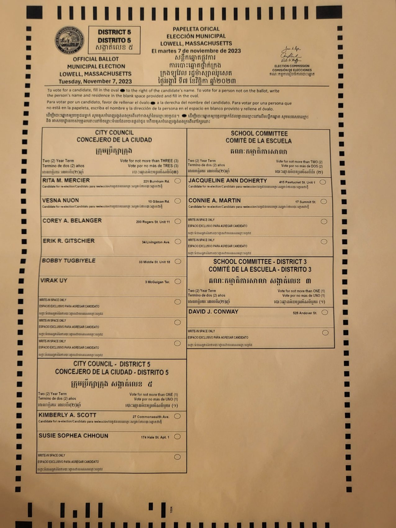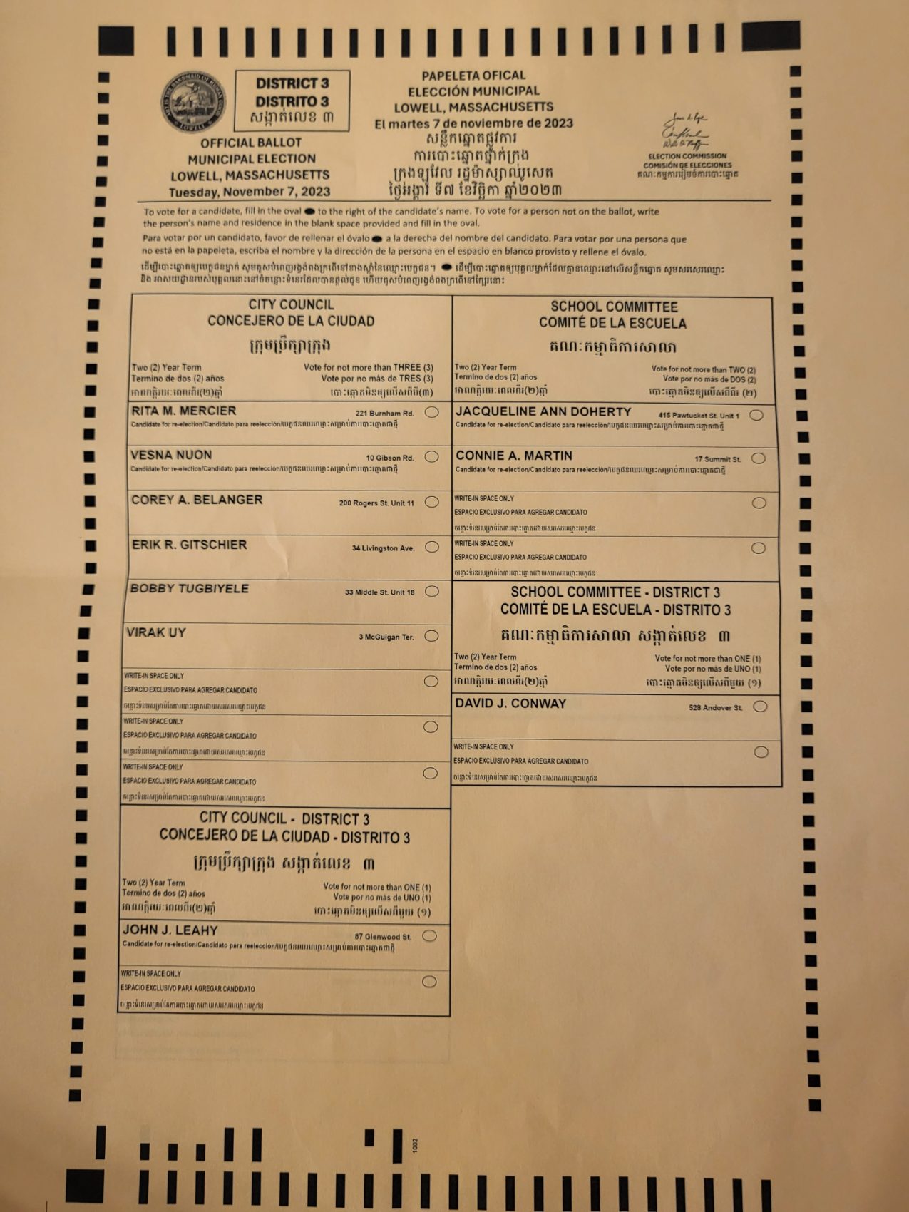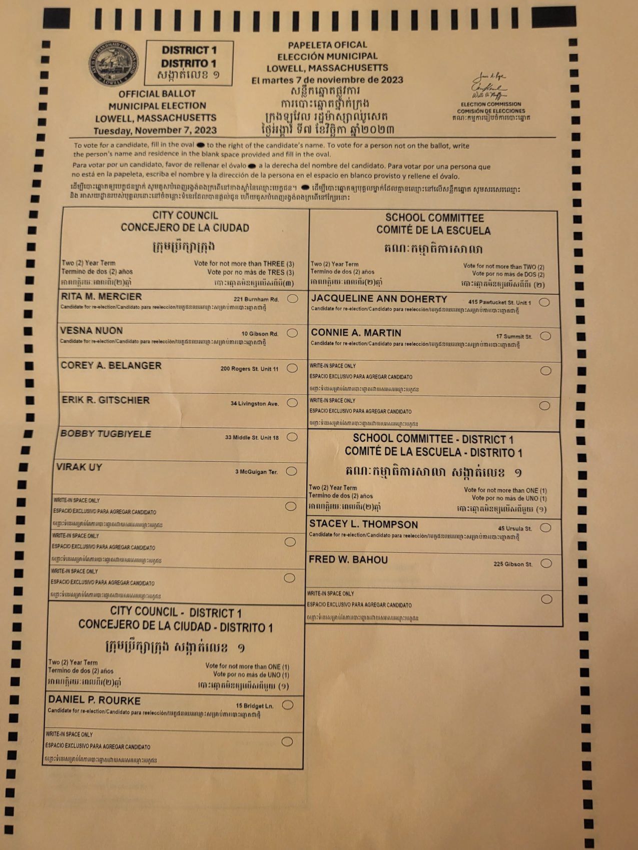 Mail/Absentee ballots were mailed out this past Monday to those who had already requested them. As of press time, Director of Elections Greg Pappas tells InsideLowell 68-people have applied for mail in or absentee ballots, though he expects more in the coming days. Monday November 6 at 12pm (Noon) is the final day to apply for in-person absentee ballots.