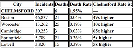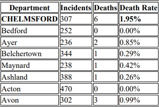 In a separate, more detailed release, Albon lists comparisons with other communities and writes “Chelmsford now ranks #5 in Massachusetts for civilian fire death rate – with residents facing odds of dying in a fire that are 10 to 65 times higher than in the state’s major cities.”